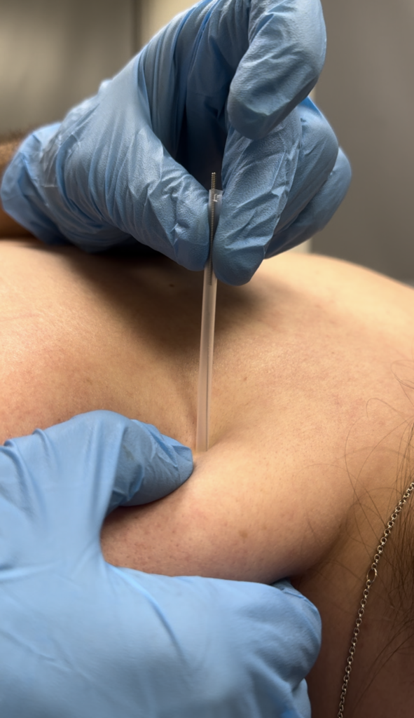 Aquests punts gallet poden causar dolor local i referit, així com disfunció del múscul afectat. La tècnica consisteix en la inserció d’agulles fines i sòlides, semblants a les d’Acupuntura, directament en aquests punts gallet per a desactivar i alleujar el dolor.